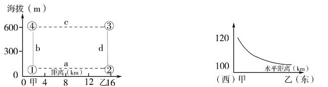 【小题1】由图2可知,甲地气压差异大,说明甲地近地面是高压,乙地气压差异小,说明乙地近地面为低压,所以①地气压高于②地,③地气压高于④地;①为高压,②为低压,而大气等压面根据高高低低规律即可,即高压处等压面上凸,低压处等压面下凹,故等压面的分布高度①地比②地高;③地气压高于④地,而大气等压面根据高高低低规律即可,即高压处等压面上凸,低压处等压面下凹,故等压面的分布高度③地比④地高。