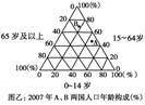 小题2:分析图乙中A、B两国人口年龄构成图可以看出 ( )