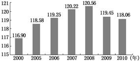 材料二 根据国家统计局2011年4月28日发布的“第六次全国人口普查主要数据”,这次人口普查登记的全国总人口为1 339 724 852人,与2000年第五次全国人口普查相比,十年增加7 390万人,增长5.84%,年平均增长0.57%,比1990年到2000年的年平均增长率1.07%下降0.5个百分点。