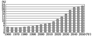 材料三 我国每隔5年的65岁及以上人口增长示意图(65岁及以上年龄人口占总人口的7%,则出现人口老龄化)。
