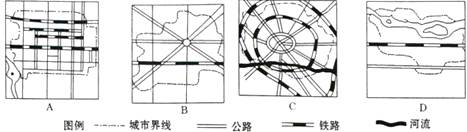 4、单选题 下图为四个规模相近的城市的道路网,其中最利于客、货运输的是