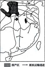 2、综合题 读“晋陕内蒙古区煤炭南运通道”,回答问题: