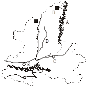 A?山,B?煤矿,C?水电站,D?河,E?市。