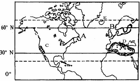 (2)A、B为世界著名的两个渔场,它们的主要形成原因是?。(1分)