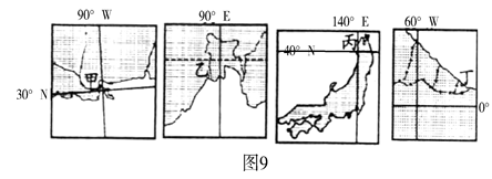 3、填空题  图9中4城市所在地区都有水稻分布,水稻种植科技含量较高的是
