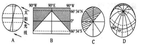 小题1:该图中最有可能表示中华民族欢度春节时的光照图是(?)