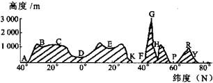 5、综合题 读“沿20°E经线地理剖面图”(图13),回答问题:(8分)