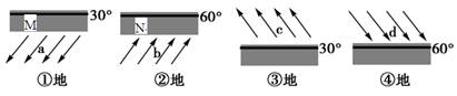 【小题2】从上述分析可知,①、②两图均位于北半球,分别为北半球的低纬度和中纬度;同理可知,③、④均位于南半球,分别为南半球的低纬度和中纬度地区。因此由南向北的顺序依次为④③①②。