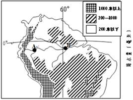 不同点:B地年降水总量大于A地;(2分)降水季节分配A地大于B地;(2分)A地位于亚马孙河上游地区,安第斯山的迎风坡,每年7-9月份,来自大西洋的暖湿气流,伸入平原内部,在亚马孙河上游受地形抬升而形成地形雨;(2分)而B地位于亚马孙河中游地区,地势低平。(2分)