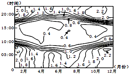 5、单选题 热岛效应是城市化带来的最明显的环境特征之一。读北京地区2007~2010年城区与郊区温度差值(℃)随时间变化的等值线图。完成下列各题。