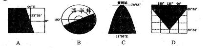 小题2:与图对应的太阳光照图正确的是(阴影部分表示黑夜)