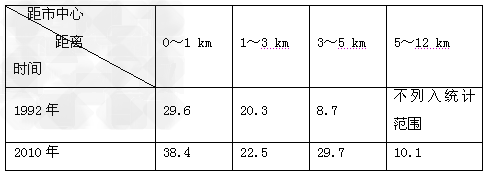 4、单选题  城市建筑的密度与高度受多种因素的影响。下表为某城市1992年和2010年距市中心不同距离建筑物的平均高度表(单位:米),据此回答1~3题。