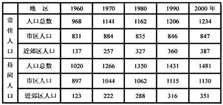 4、单选题 读“某大城市常住人口、昼间人口变化表”(单位:万人)完成1—2题。