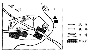 ⑵从图中可以看出这个城市的工业区主要分布在东北部,其布局是否合理,并阐述理由。