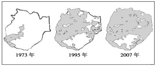 3、单选题 下图是“某岛屿城市扩展过程及海岸线变化图”,图中阴影表示的是城区范围,读图回答下列各题。