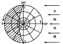 3、综合题 读太阳照射图,回答下列问题。(1)从南北半球看,此图所示的是_______半球。