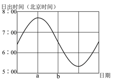 小题1:读图,a~b期间,该地日出时间由最晚逐渐在提早,但日出时间仍晚于6点,所以此时段内,该地昼短夜长,且昼在逐渐变长,夜渐短,C对。A、B、D错。