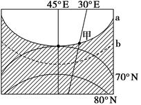 小题4:此日某时刻,该纬线上的甲、乙两地的太阳高度均为15°,则甲、乙两地之间最短地面距离是