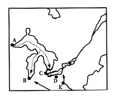 3、综合题 读“五大湖地区图”,回答下列问题: