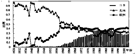 ²ÄÁÏÒ»?ÏÂͼΪÊÀ½çÈý´óÆû³µÉú²úÇøÓò±ÈÀý±ä»¯Í¼¡£