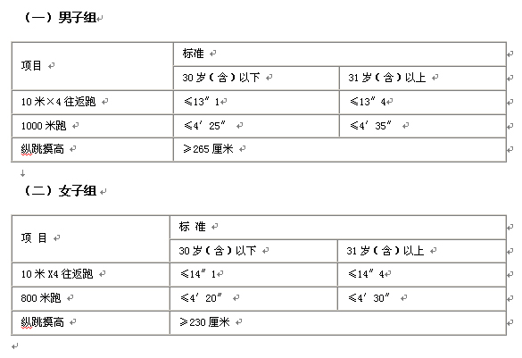 2014年陕西公务员考试公告陕西省录用人民警察体能测评项目和标准(暂行)