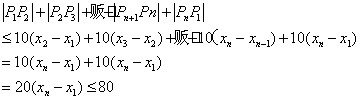 实际上当有长度为1米和5米的旗杆相距40米时,此时,其他旗杆在这两个旗杆的连线上分布,此时围成的长度为80米。