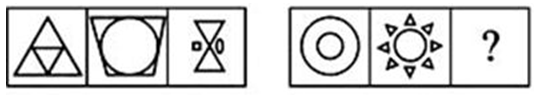 4、单选题 从所给的四个选项中,选择最合适的一个填入问号处,使之呈现一定的规律性。_____