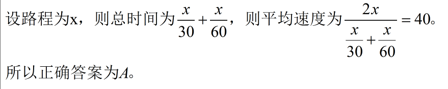 5、单选题 汽车往返甲、乙两地之间,上行速度为30公里/时,下行速度为60公里/时,汽车往返的平均速度为_____公里/时。