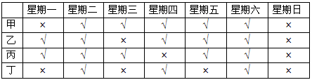 4、单选题 A、B、C、D四人分别到甲、乙、丙、丁四个单位的一个单位去办事。已知甲单位星期一不接待,乙单位星期三不接待,丙单位星期四不接待,丁单位星期二、四、六接待,星期日四个单位都不办公。一天,他们议论起哪天去办事A说:“你们可别像我前天那样,在人家不接待的日子去。” B说:“我今天必须去,明天人家就不接待了。” C说:“我和B正相反,今天不能去,明天去。” D说:“我从今天起,连着四天哪天去都行。”则这一天是星期几?_____