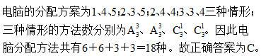 1、单选题 某单位购买了10台新电脑,计划分配给甲、乙、丙3个部门使用。已知每个部门都需要新电脑,且每个部门最多得到5台,那么电脑分配方法共有_____种。