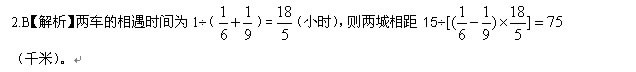 4、单选题  甲、乙两辆清洁车执行东、西城间的公路清扫任务。甲车单独清扫需要6小时,乙车单独清扫需要9小时,两车同时从东、西城相向开出,相遇时甲车比乙车多清扫15千米。问东、西两城城相距多少千米?_____