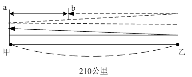 2、单选题 甲、乙两地相距210公里,a、b两辆汽车分别从甲、乙两地同时相向出发并连续往返于两地,从甲地出发的a汽车的速度为90公里/小时,从乙地出发的b汽车的速度为120公里/小时。问a汽车第二次从甲地出发后与b汽车相遇时,b汽车共行驶了多少公里?_____