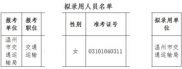 2016年温州市交通运输局考试录用公务员拟录用人员公示