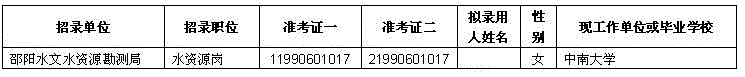 湖南水文水资源勘测局2016年拟录用参照公务员法管理人员名单