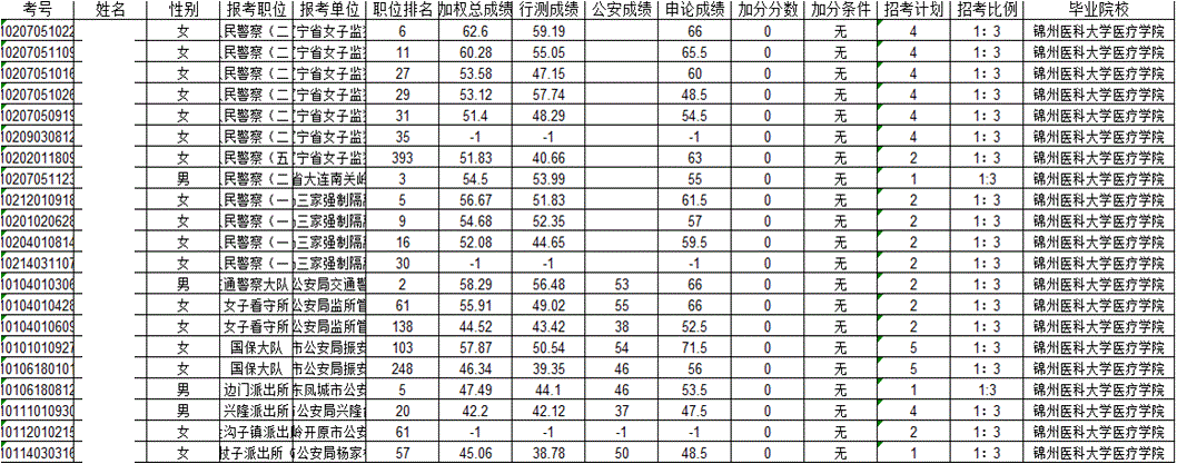 附件:2017年辽宁省公安机关及省属监狱戒毒系统考试录用公务员笔试成绩