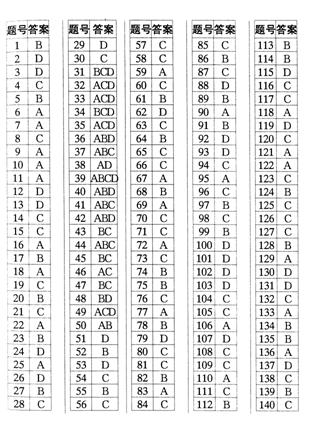 针对下列图、表或文字回答问题。你应根据资料提供的信息进行分析、比较、计算、处理。根据下表回答126~128题。(每小题0.9分,共13.5分)