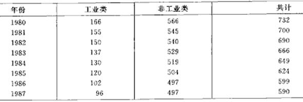 88. B[解析] 1986年和1987年非工业类文官数量均为497千人,没有变化,故正确答案为B。