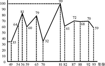 93. A[解析] 1949年新中国成立。1949年对应的点的纵向数值为35,故正确答案为A。