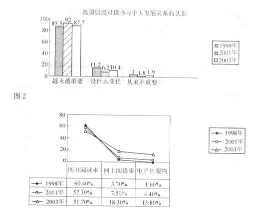98.与2001年相比,有关2003阅读方式的说法,正确的是: