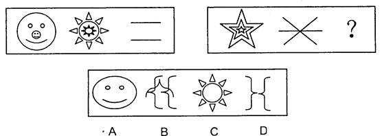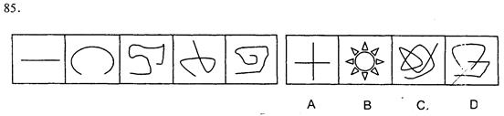 85.【解析】左边五个图形由一条线组成,且是非封闭的,所以最后一个图形也应如此,选C。