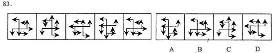 83.【解析】左边五个图形的规律是逆时针旋转900,所以选C。