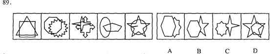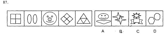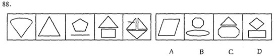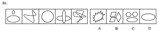 86.【解析】左边五个图形均封闭且无棱角的,所以选D。