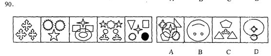 90.【解析】左边五个图形分别是由1、2、3、4、5种图形组成,由此可推知,第六个图形应是6种图形组成的。选A。
