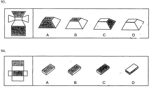 94.【解析】只有A所示的图形是由左边的纸板折叠而成,所以正确签案是A。