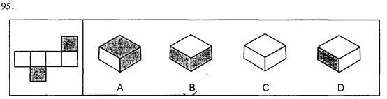 95. 【解析】只有D所示的图形是由左边的纸板折叠而成,所以正确签案是D。