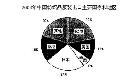 155.【解析】2003年中国服装出口占中国纺织品服装出口的比重为519.17÷804.84×100%=64.51%,所以选A。