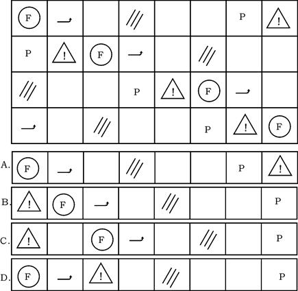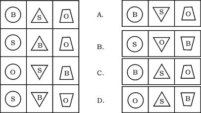 34. D[解析]每一行中含有“B”字母的图形在下一行中旋转180°,注意第一行圆中有B,旋转180°后,位置变化看不出来。