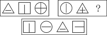 65. D[解析] 每组图均含有三角、正方形、圆、横线、竖线、十字线等六种元素,故答案为D。