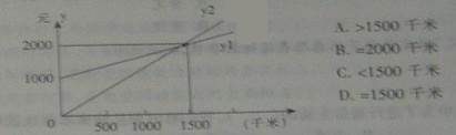 10,某单位欲向个体或国有租赁公司签订租车合同,设汽车每月行驶x千米,个体车主的月租费是y1元,国有公司的月租费是y2元。y1、y2与x之间的函数关系如图所示。每月行驶的路程在什么范围内租国有公司的车合算?( )