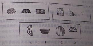 65.D [解析]第一组图中第一个小图形小三角依次向右翻转、平移后,组成后两个图形;依此规律,D项正确,稍有不同的是,正方形向左翻转。